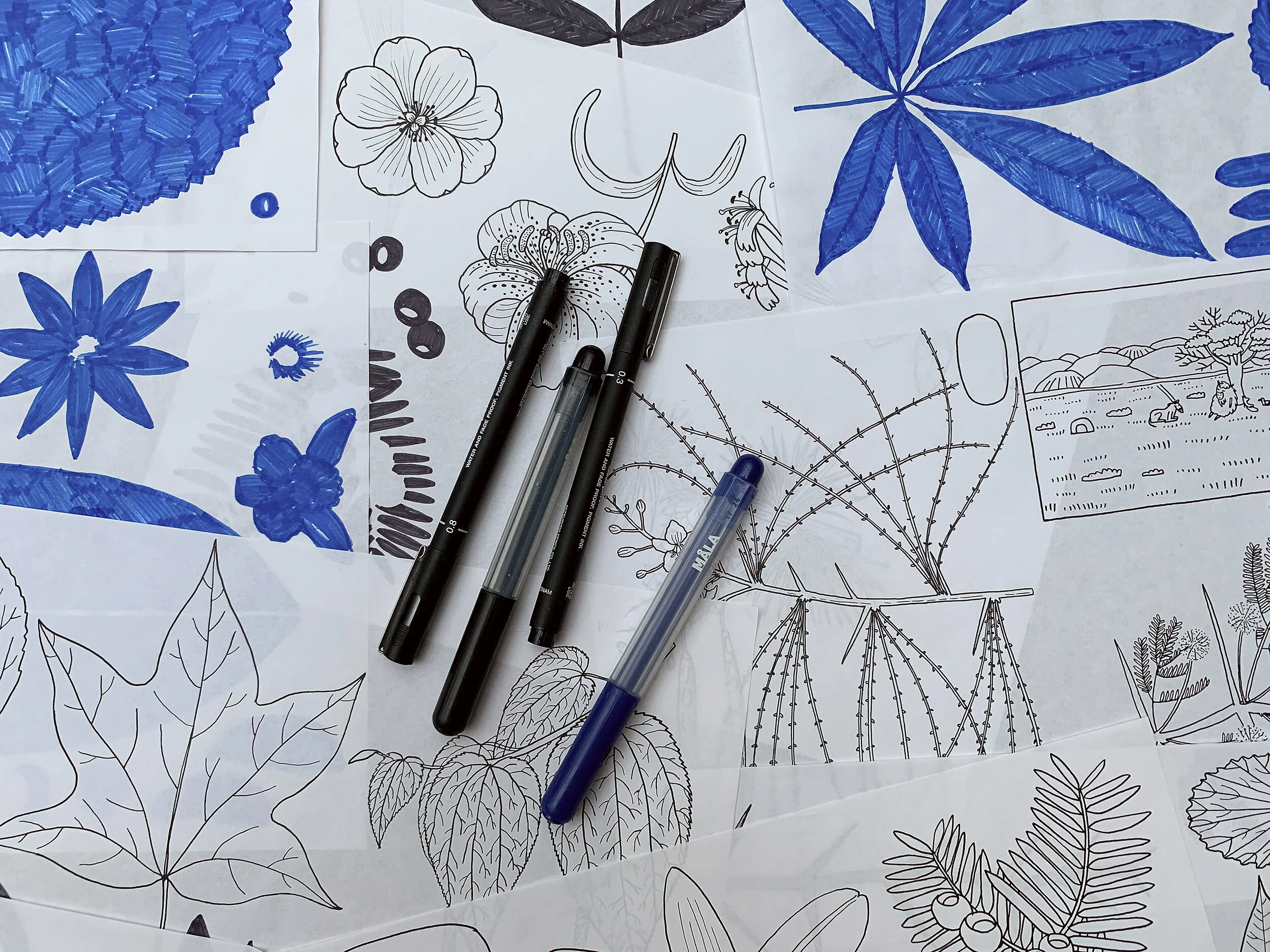 All of the plants are hand drawn on paper (yes, analogue, regular paper). The difference in technique between the herbarium and the rest of the book lies in the way we applied colors. We wanted the herbarium to have more organic and sketchy look, so instead of applying colors in Photoshop we used markers to make the fillings. Unfortunately, this traditional approach has a significant inconvenience: adjusting colors is a drag.
